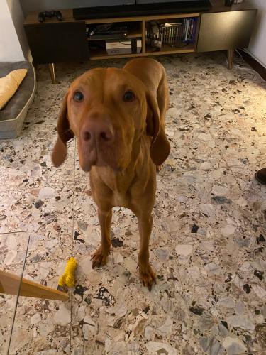 Aveva smesso di fare le feci in casa, ma ha ripreso da qualche giorno, mangia le sue feci e poi non ha appetito, salta addosso alla gente che passa perché vuole giocare o vuole le coccole, ma essendo adesso di taglia media tutti si spaventano, e rischio di litigare con la gente, sui mezzi non sta fermo e vuole coccole e vuole giocare con tutti, al comando seduto sui mezzi e a volte anche in...