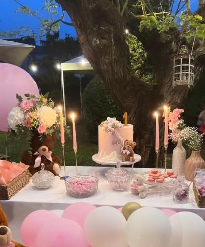 Decorazione angolo torta battesimo e sala dedicata all'evento con palloncini a formare una ghirlanda oppure qualcosa di simile. Grazie ramona