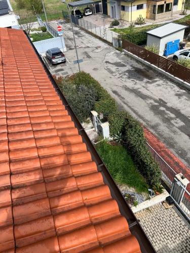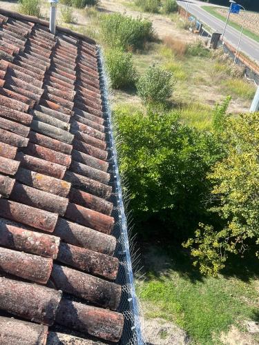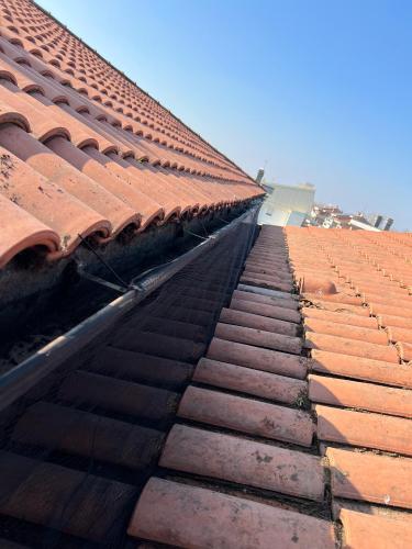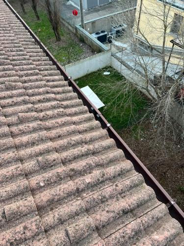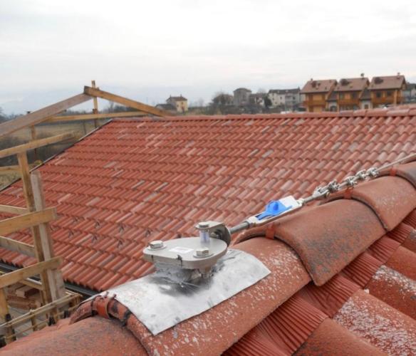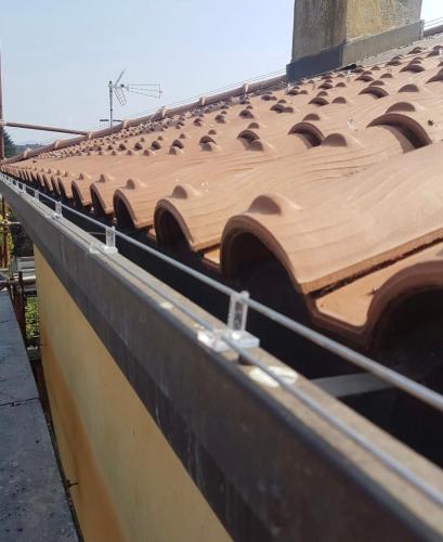 Tetto accessibile tramite abbaino. Nonostante i 2 piani, la casa possiede una falda del tetto che sporge su una parte molto più alta. Non possiedo una linea vita.