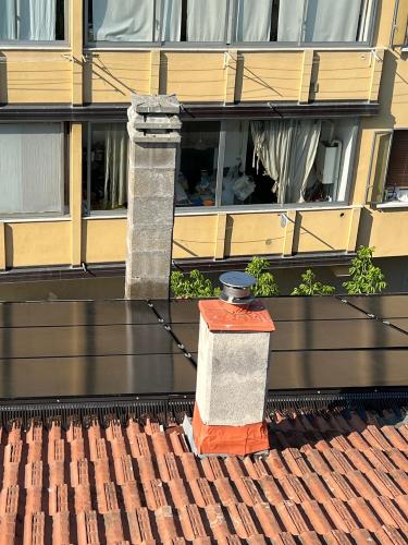 Accesso al tetto unicamente con scala o torretta ridotta di spazio per la difficoltà ad accedere alla base (percorso d'accesso è pedonale con poco spazio laterale)