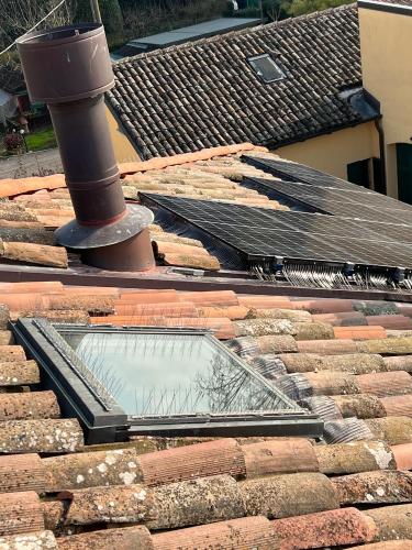 L'accesso ai pannelli fotovoltaici posti sul tetto inclinato del fabricato, può essere fatto attraverso un terrazzino posto in mansarda.