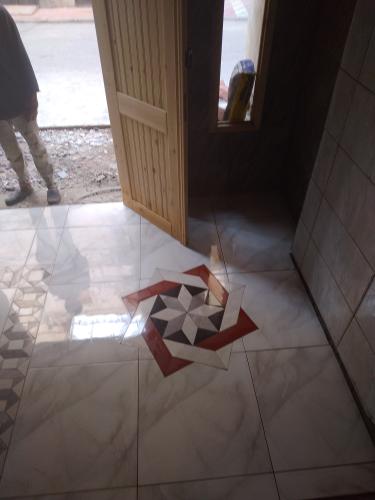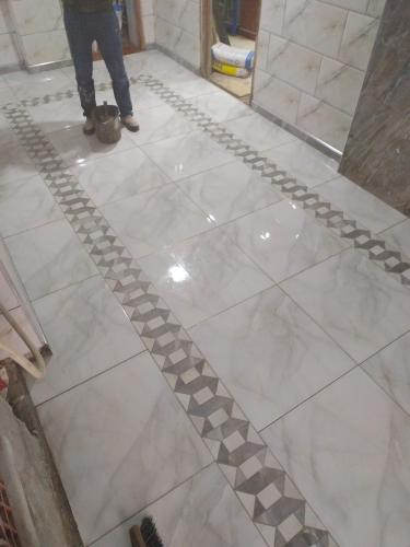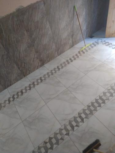 Muratore per lavoro in pareti, pavimento, piastrelle, muro in appartamento