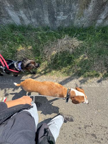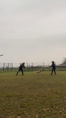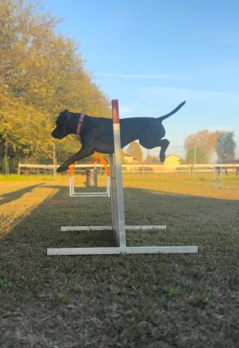 Brava e moto vivace tipico della sua razza lei vive in giardino recintato e dorme in casa con le persone e molto esuberante . Con altri cani e sempre un dubbio di solito con i maschi molossi come lei e perfetto gioca e tutto ok , piccola taglia meglio di no . E sterilizzata