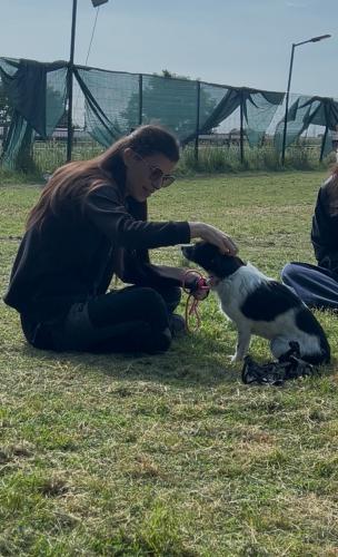 Lei è abituata a fare i bisogni su traversine essendo che vive in appartamento con noi, con i cani è molto giocherellona e insistente essendo cucciola, ha appena fatto un anno, le crocchette le procuriamo noi per lei